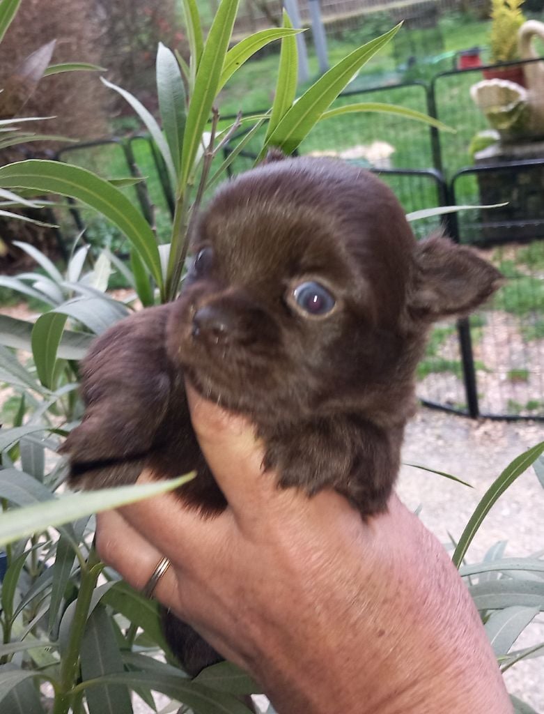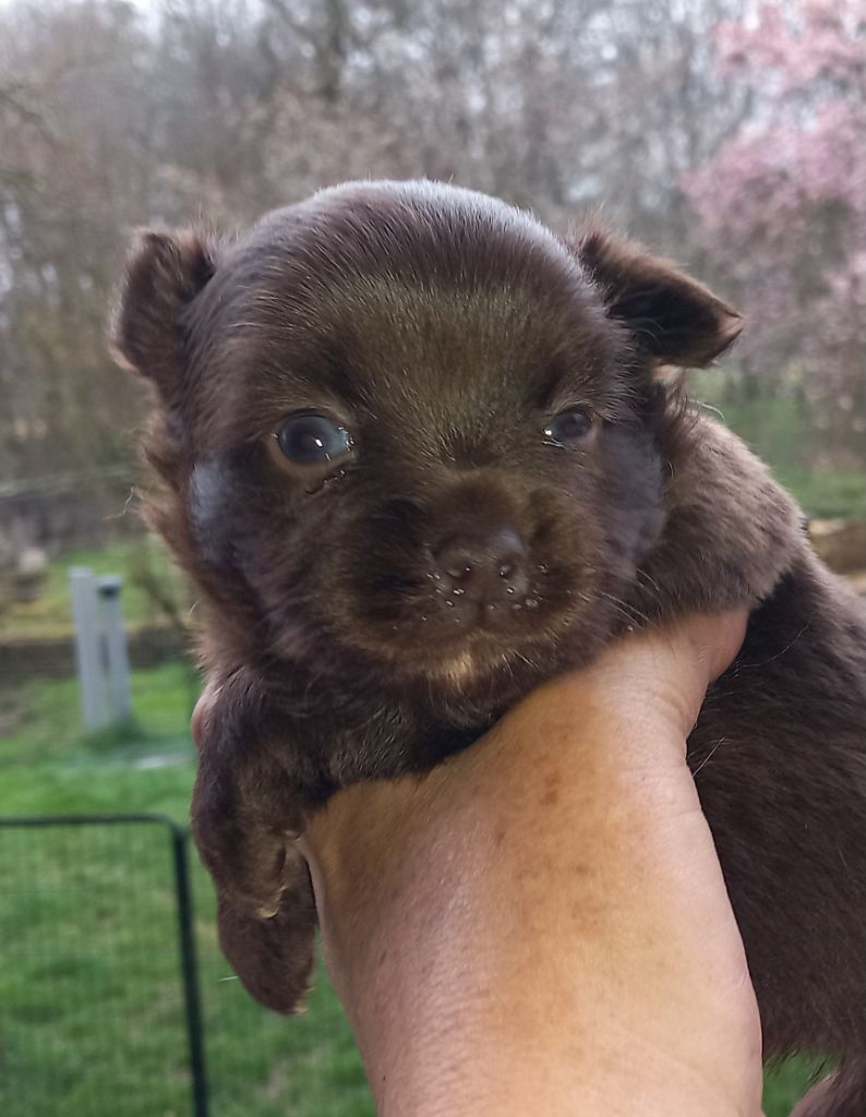 Petit mâle chocolat avec tâche blanche en poitrine